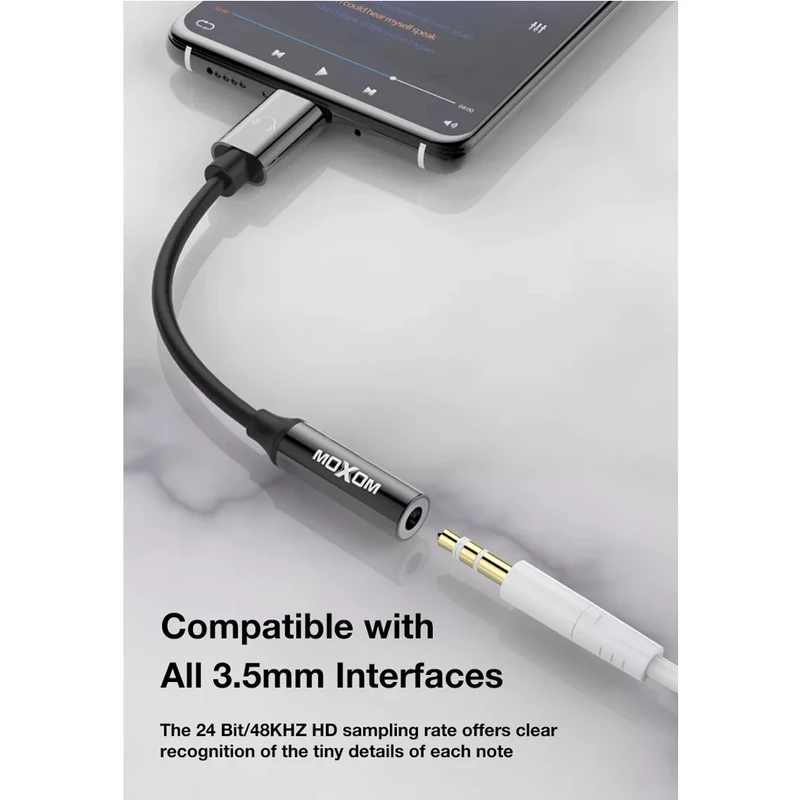 با مبدل USB-C به جک 3.5 میلیمتری هدفون و هندزفری MOXOM MX-AX01 میتوانید انواع هدفونهای مجهز به کانکتور 3.5 میلیمتری را به گوشی موبایل خود با ورودی تایپ C متصل کرده و با استفاده از آن به موسیقی گوش دهید. نسل جدید در گوشیهای موبایل سامسونگ، شیائومی و … درگاه 3.5 میلیمتری صدا ندارد و شما تنها میتوانید با استفاده از درگاه USB-Cآن به موسیقی گوش داده و با هدفون مکالمه کنید. این محصول بهراحتی داخل کوچکترین جیب یا کیفها جای میگیرد و شما میتوانید همیشه آن را همراه خود داشته باشید. در یک سمت از این مبدل، یک کانکتور USB-C وجود دارد که با انواع گوشیهای موبایل سامسونگ، شیائومی و … با در گاه USB-C سازگاری خواهد داشت. سپس با استفاده از درگاه 3.5 میلیمتری در آن که سمت دیگر مبدل قرار گرفته، هدفون، هندزفری یا دیگر لوازم مجهز به کانکتور 3.5 میلیمتری را به گوشی موبایل یا تبلت خود متصل کنید. کانکتورهای بهکاررفته در این مبدل مقاوم هستند و رشتههای سیمی آن با استفاده از روکشی نخی تنیده پوشانده شده است. این روکش هم مقاومت دارد و باعث میشود رشتههای سیمی در برابر قطعشدن مقاوم باشند.